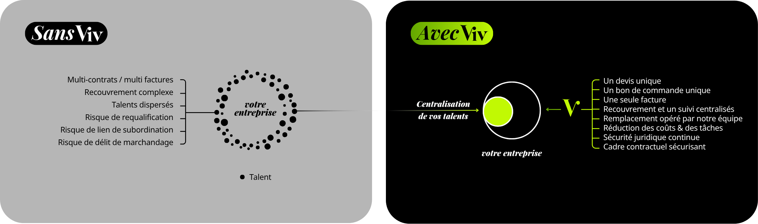 Spécialiste de la mise à disposition de talents, VIV accompagne les entreprises dans l’intégration rapide de profils experts au sein de leurs équipes. Un modèle agile, conforme et durable, pour des collaborations efficaces dès le premier jour.